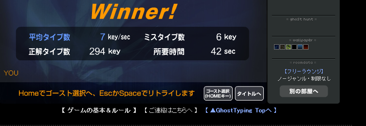Ghost Typingのゴースト対戦で、7key/秒 が出せるようになりました~(ぉ