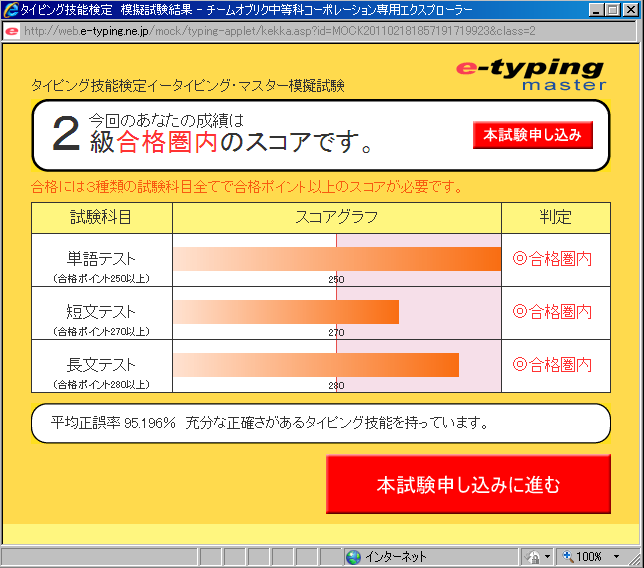 昨日辺りに、e- typing というタイピングが出来るサイトの検定の模擬試験というのがあったので